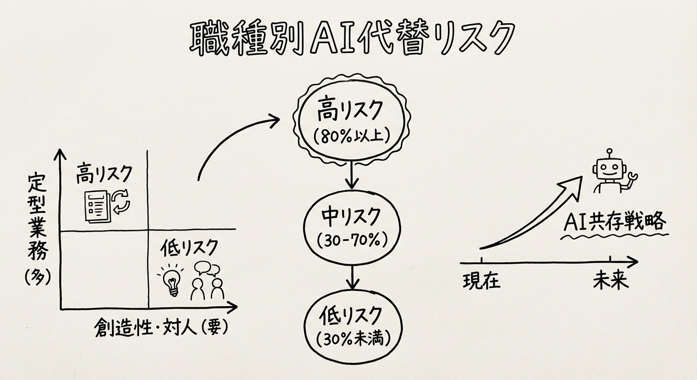 - 大規模代替: 多くの職種がAIに代替されるリスク