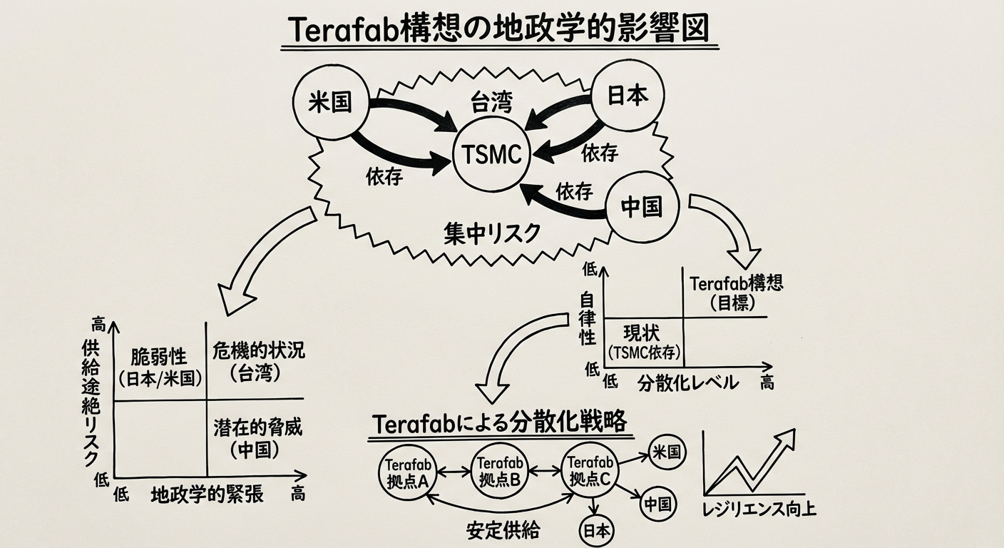 図2: Terafab実現がもたらす地政学的変化と半導体サプライチェーンの再編イメージ